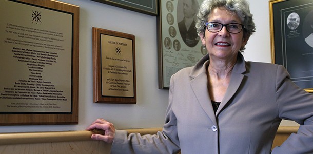 Pragmatique et toujours aussi passionnée, elle se joint en fin de carrière à la fonction publique du Yukon comme responsable des politiques et des communications à la Direction des services en français. Pendant près d’une dizaine d’années, elle travaille avec les principaux acteurs au sein du gouvernement territorial pour accroître et améliorer l’offre de services publics en français.